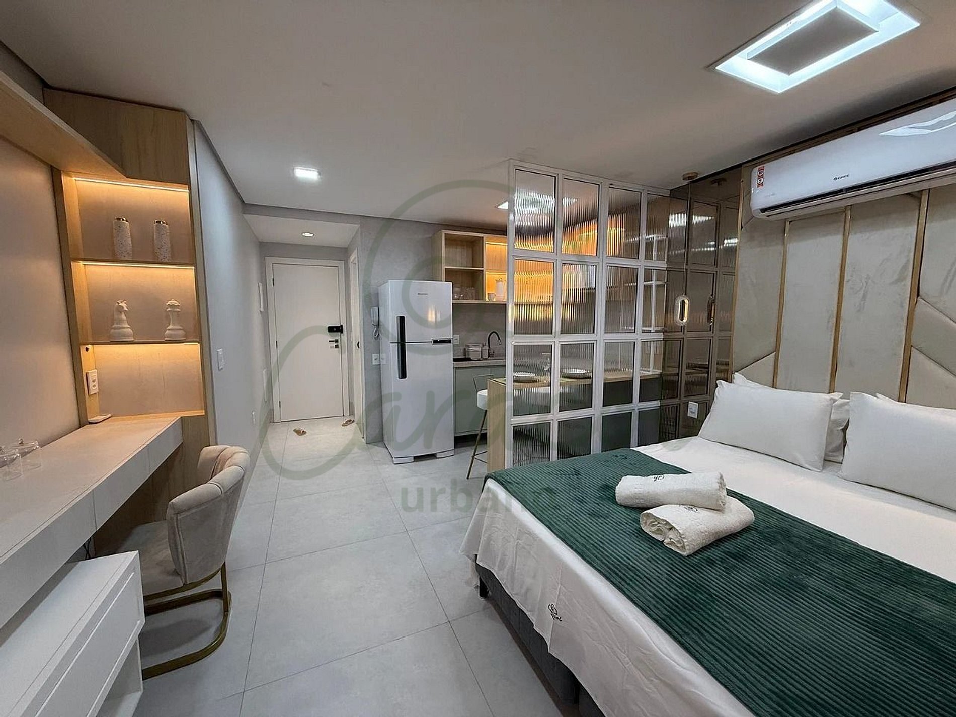 Bem-vindo ao Golden Studio, um apartamento que combina sofisticação e conforto no exclusivo edifício City House. Com uma arquitetura marcada por detalhes em dourado e um design elegante, este espaço foi criado para oferecer uma experiência luxuosa aos seus hóspedes. Perfeito para quem valoriza estilo e praticidade, o Golden Studio está localizado em um prédio moderno que reflete requinte em cada detalhe, garantindo uma estadia memorável. Reserve agora e viva o ouro do conforto!