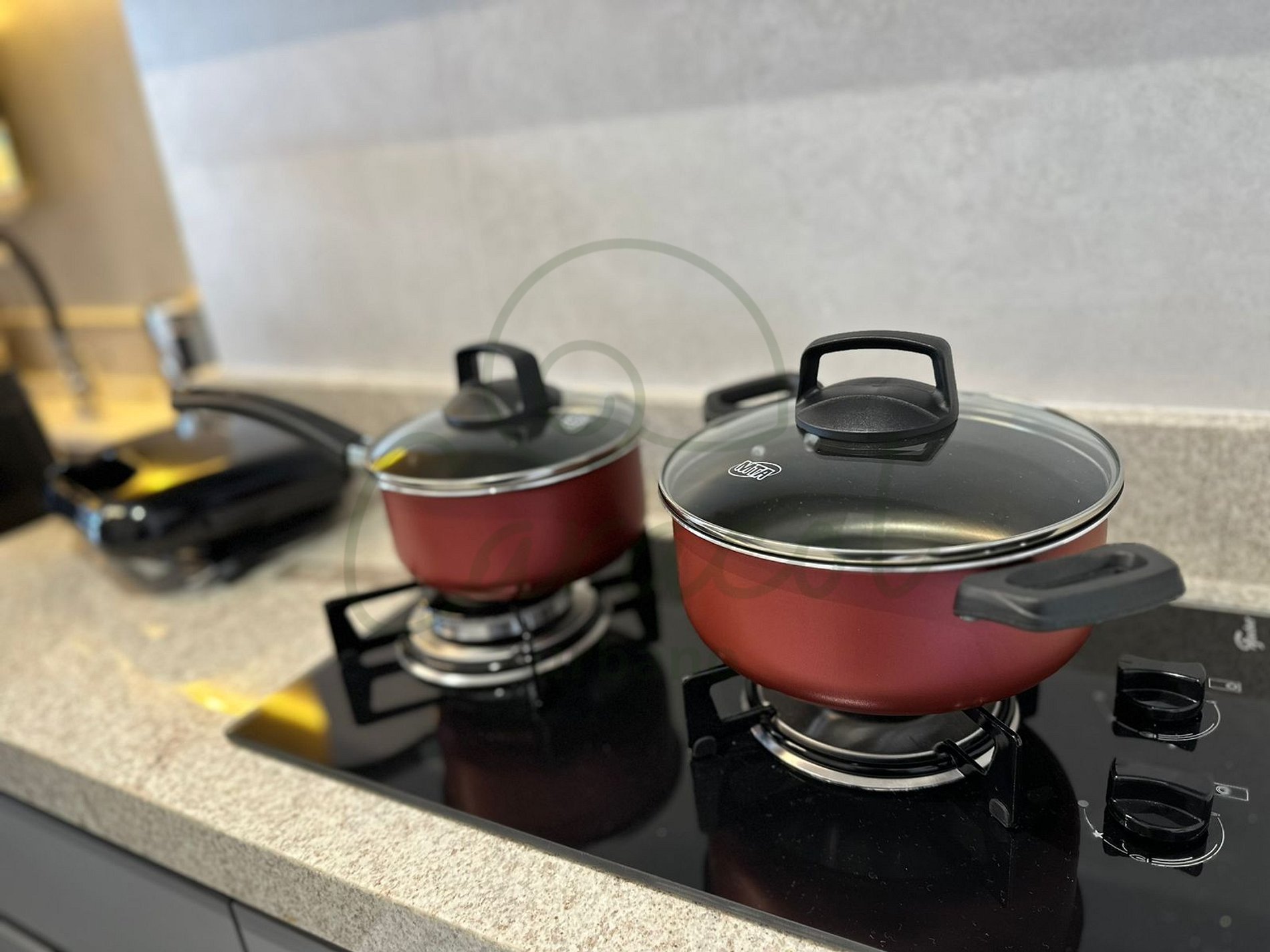 11- Cozinha e Utensílios: Para preservação das panelas, utilize exclusivamente colheres de madeira ou silicone. É proibido o uso de esponjas de aço (lã de aço) na higienização das mesmas.